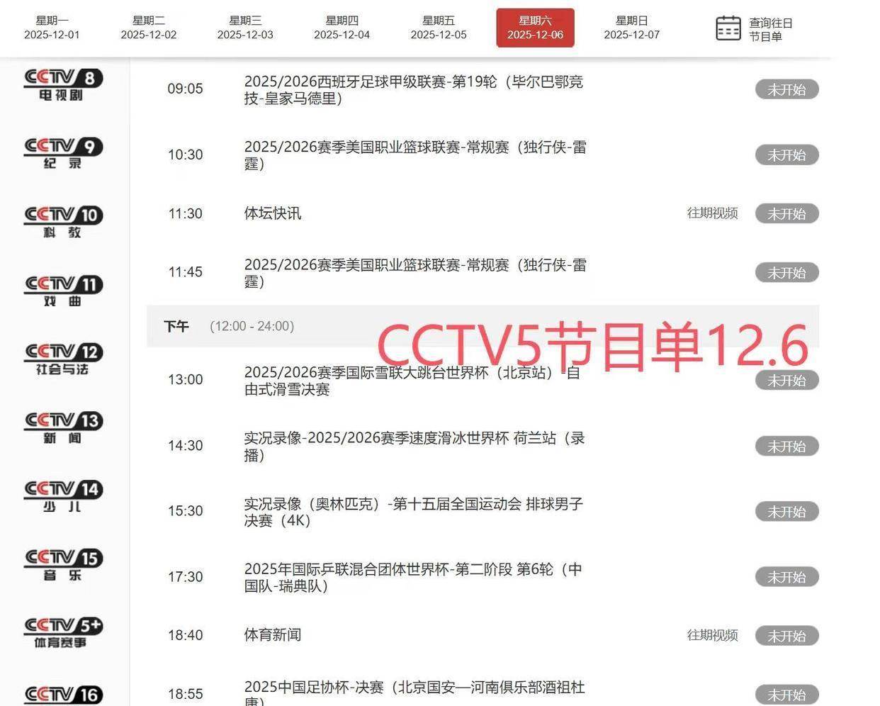 早晨8点,体育赛事的大幕就已经拉开。 CCTV5+频道正在直播花样滑冰大奖赛总决赛,冰面上的优雅舞姿是唤醒周末的第一种方式。 与此同时,斯诺克英锦赛也进入了白热化的半决赛阶段,台球桌边的静默与精准同样扣人心弦。